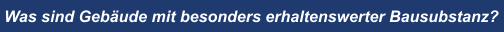 Während die Definition von Denkmalen eindeutig ist und der Gesetzgebung der Länder folgt, ist der Begriff der sonstigen besonders erhaltenswerten Bausubstanz rechtlich unbestimmt. Erkundigen Sie sich deshalb bei Ihrer Kommune (Denkmalbehörde, Stadtplanungsamt oder Bauamt), ob Ihre Wohnimmobilie in einem Sanierungs- oder Erhaltungsgebiet steht und die Anforderungen an eine erhaltenswerte Bausubstanz erfüllt.